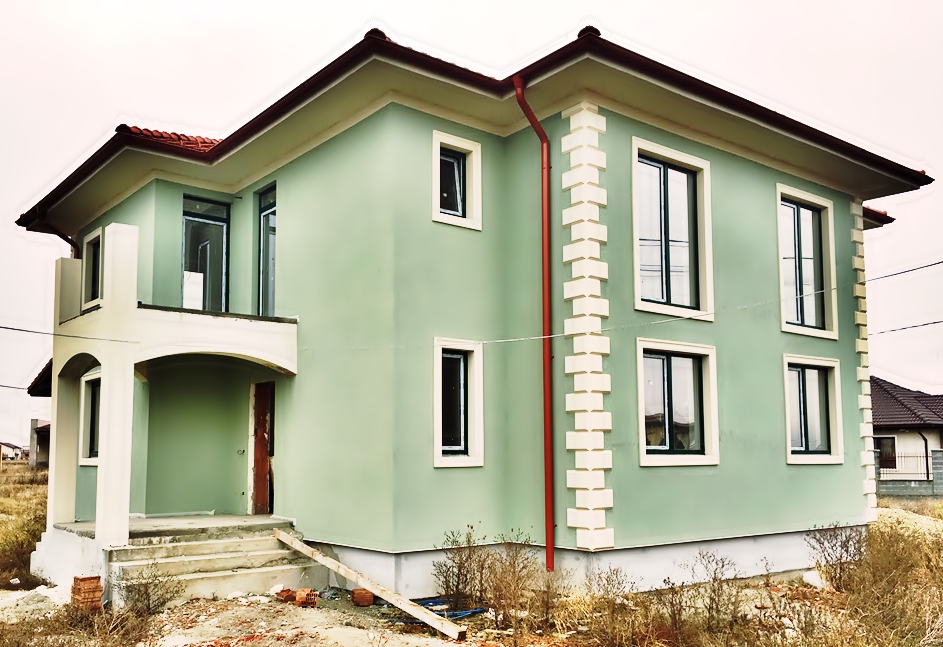 Are acoperis de tigla, ferestre cu geamuri termopan, izolatie exterioara de 10 cm. La finisaje s-au folosit numai materiale de calitate.
