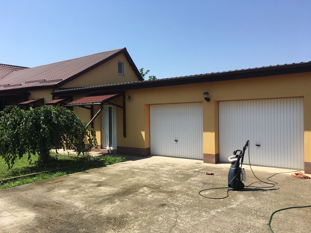 Casa este situata in centrul comunei, langa primarie. Accesul se face pe asfalt, trotuarul este nou. Vorbim de o casa de 150 m2 inainte de a fi preluata de actualii proprietari ce au extins-o cu inca aproximativ 100 m2(bucataria de vara, toaleta de servici si garajul dublu cu atelierul sunt constructie noua). Restul casei a fost renovata in totalitate in anul 2008. Acoperisul este de tabla Bramac, casa fiind retencuita interior/exterior, instalatie apa/gaz, curent electric: noi. Peste tot avem gresie, faianta, parchet. Usile interioare sunt schimbate, ferestrele sunt PVC cu geam termopan, centrala termica proprie cu calorifere, inclusiv in garaj.